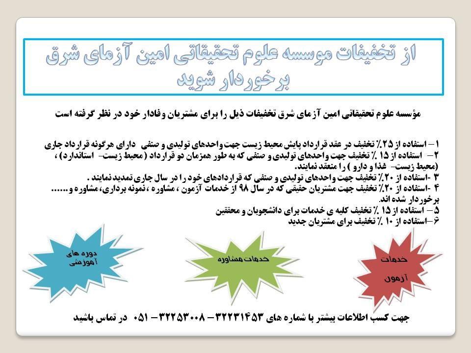 تخفیفات موسسه علوم تحقیقاتی امین آزمای شرق
